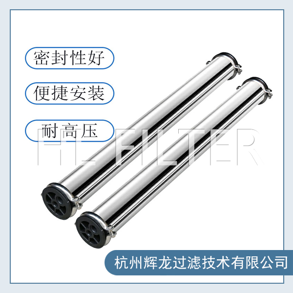 8040膜壳:分卡套和端盖式两种,采用SUS304无缝不锈钢管制成,密封性能好,耐压高,不会老化,安装、清洗膜方便,工作压力(Mpa:4.0。膜壳进出水口可根据客户要求,端进(出)或侧进(出)。不锈钢膜壳有2.5寸、4寸、8寸等、